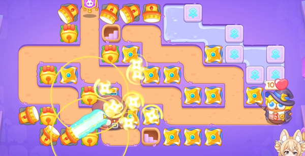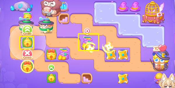 1、阿波与魔法宝藏第25关这关开局要建造铃铛炮塔,升满级后可以范围清掉周围所有障碍物。