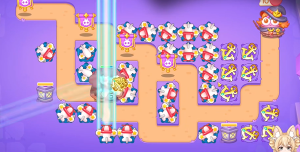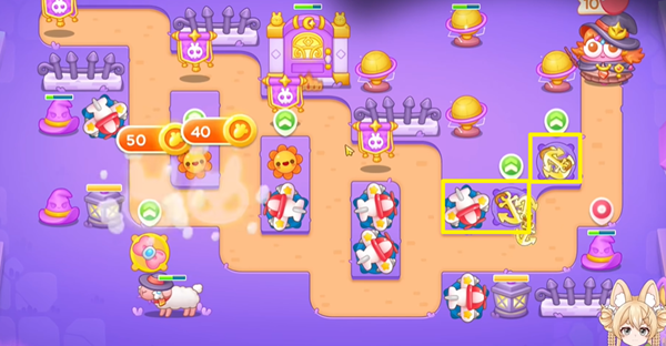 1、阿波与魔法宝藏第24关开局给了我们很多金币,我们从左往右建造,优先建造激光炮塔,去拆掉右边的小道具。