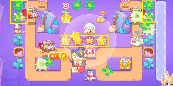 3、中期我们依靠四叶草和海星把障碍物全部拆掉了,接下来要做的就是不断放置炮塔来补充火力了。