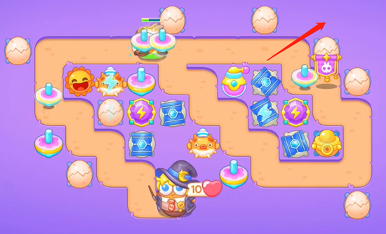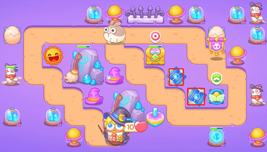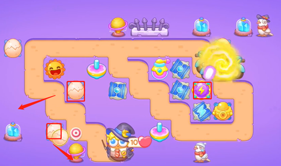 4、最后一遍增加线上的炮台数量强化伤害能力,也要注意把场上所有的道具全部清理干净拿到全清,完成通关。