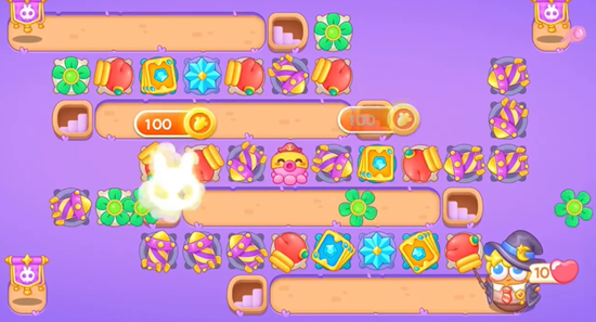 3、这一关有很多的飞行兔子,所以我们要在两边放置更多的导弹,把剩下的道具全部打掉之后拿到全清。