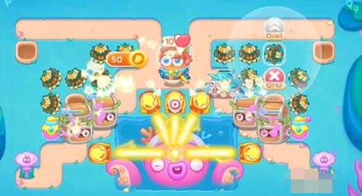 4、在萝卜下方建造三个满级燃烧瓶,集中火力攻击章鱼兔。