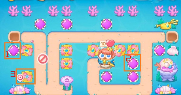 1、开局在地图右中间位置摆放魔法球,清理掉左侧的道具摆放蝴蝶结,趁兔子没来时魔法球抓紧清理大道具。