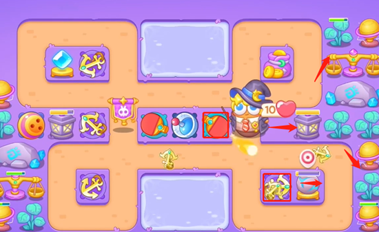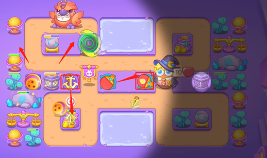 3、开始向右边开图,点亮灯之后我们还是优先打掉小道具然后获得位置放置船锚,继续清理掉周围的道具。