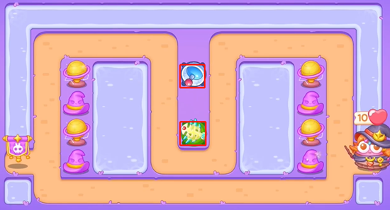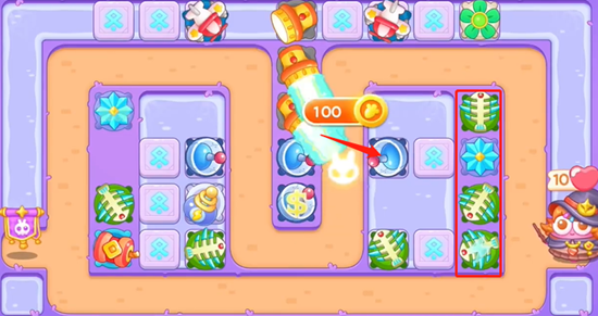 4、右边也是一样的,打掉道具之后马上在后面放置鱼刺收割,水中出现宝箱打掉也可以获得炮台支援。