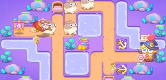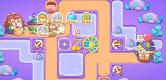 2、先在萝卜附近建造两个船锚,集中火力攻击右侧的道具。