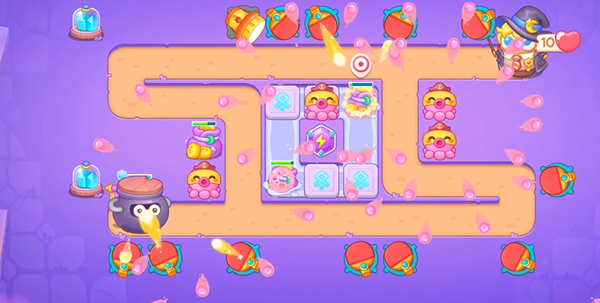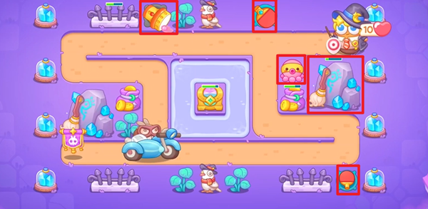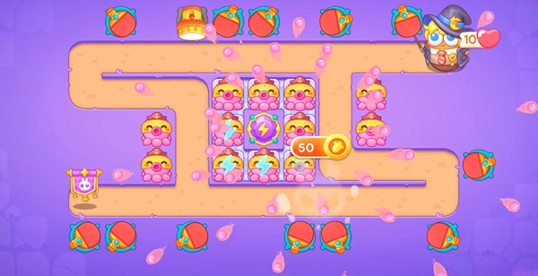 3、拆掉所有的道具足够我们升满级炮塔,中间的格子清出来后就可以放置最后的火力了。