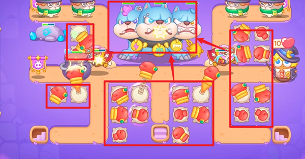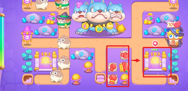 1、在地狱犬的下面先建造几个拳击炮塔,拆除右边大道具的同时还可以打掉前几波的兔子。