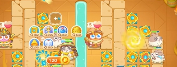 4、在左侧上方建造一个卡牌并升到满级,攻击上方的钱袋。