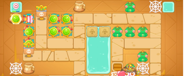 1、先在下方的位置建造上一个乌龟和一个青蛙,清理障碍物。