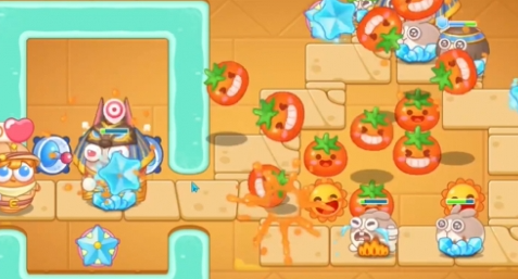 2、然后在右侧建造一个满级减速星星,接着在中间和左侧补充番茄炮台
