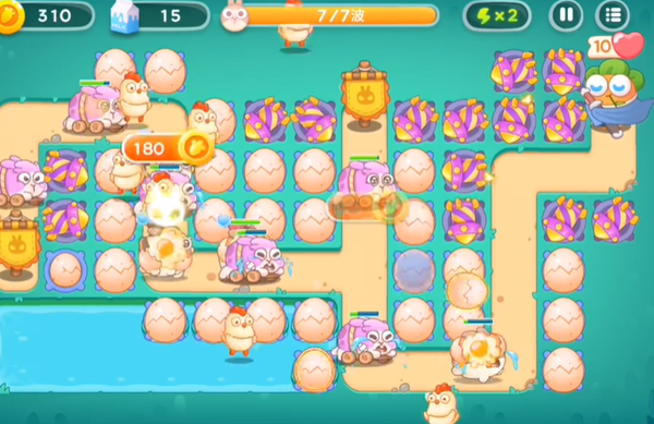 2、当左边的相关目标被拆掉之后,要继续放置蛋壳,并且把放置的蛋壳都升级到满级状态,满级的蛋壳会有更强的防御或者攻击能力。而右边的追踪导弹呢,需要持续不断地拆除障碍物,这有助于清理游戏场景,为后续的发展腾出空间。