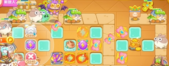 3、将右侧的道具清除后,补充一个蝴蝶结炮台将其升到满级