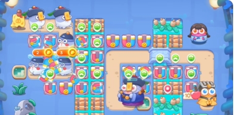 3、使用水池中的磁铁将中间的道具清除,补充多个满级磁铁。