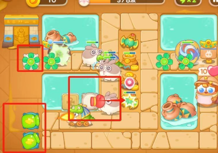 4、暂时攻击不到兔子的炮塔就用来清理周边的道具,获取更多的空位与金币。
