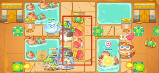1、保卫萝卜4法老归来91关开局在左右两侧分别建立一个风扇塔减速,然后在左下方建一个瓶子炮塔用来攻击兔子,空闲的时候攻击旁边道具。
