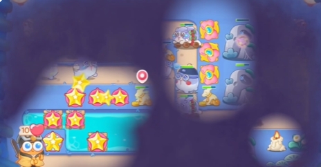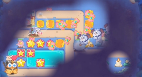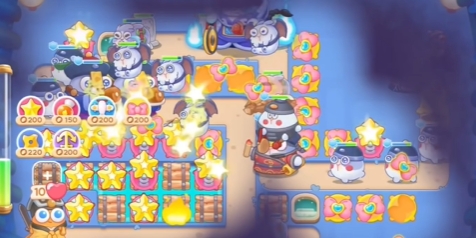 3、使用星星将上方的道具清除后,补充多个星星炮塔。