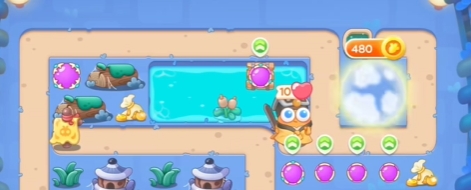 4、继续使用右侧的魔法球将水池中的道具清除。