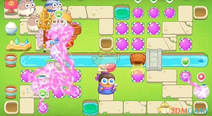 1、开局在右侧放置多个魔法球,左侧放置魔法球来清理道具收割残血;