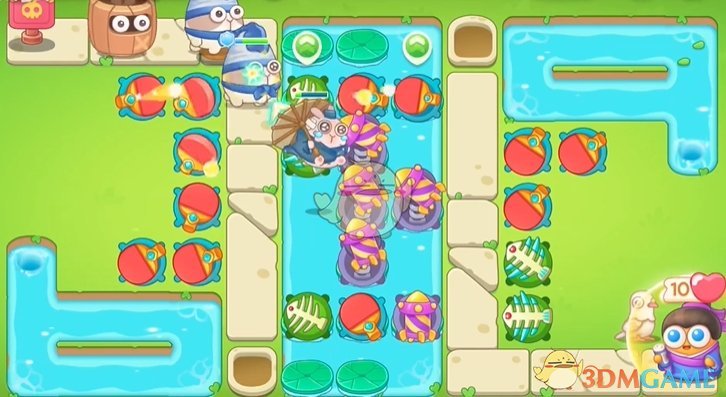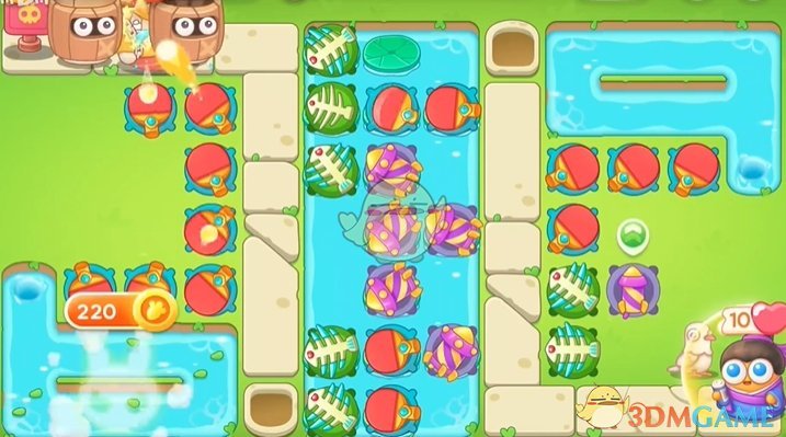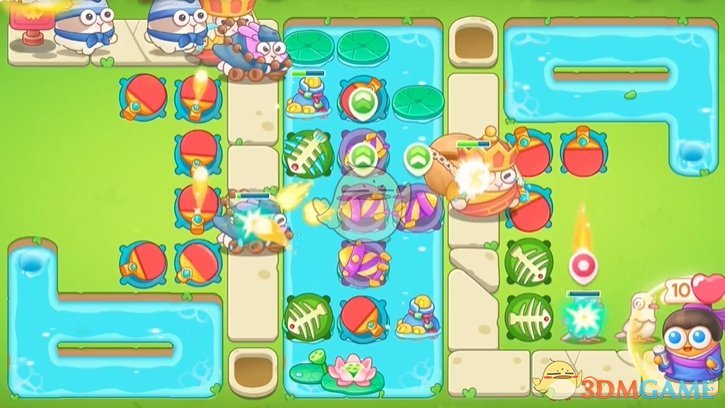 2、球拍清图的速度比较快,在空位和荷叶上放置鱼骨和火箭炮塔;