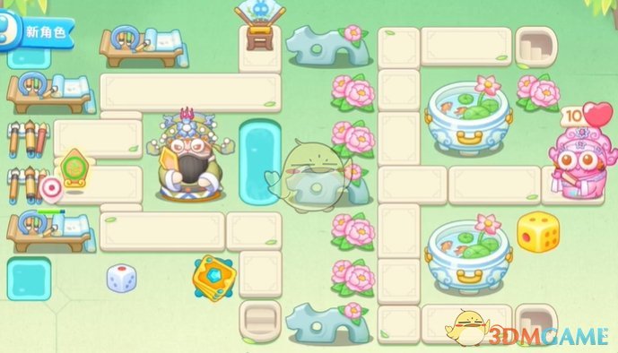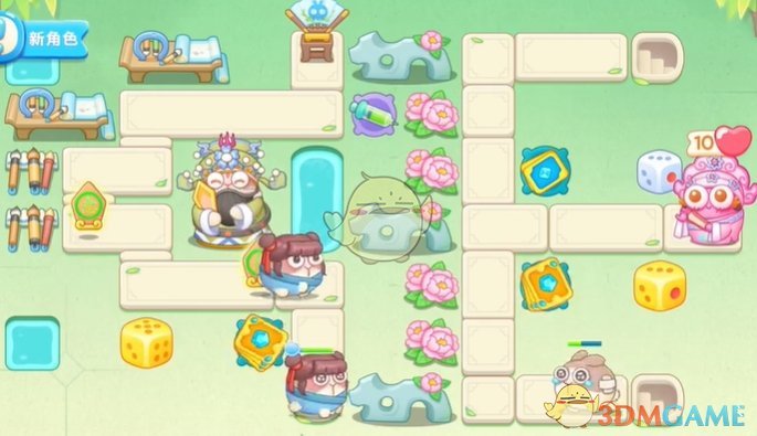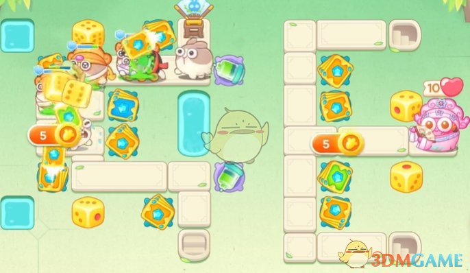 1、首先在左侧放置卡牌和骰子清理道具,萝卜下面放置骰子清理怪物;