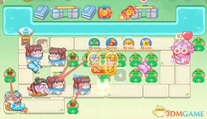 3、空闲的炮塔可以继续清理道具,中间的空位继续增加青蛙炮塔;