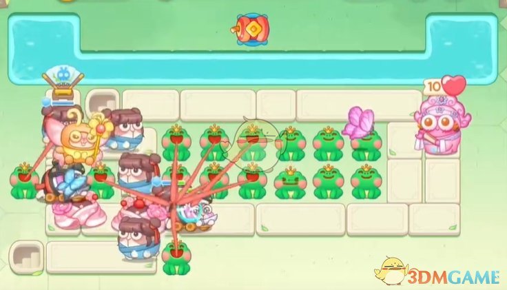 1、首先在中间和下面放置青蛙,清理怪物和附近的道具;