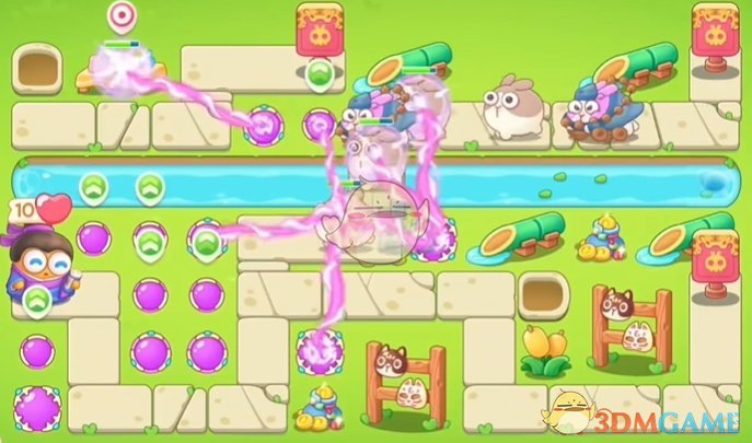 1、开局在中间和左侧放置魔法球,用来清理道具和怪物;