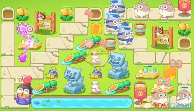1、开局在左侧放置魔法球清理道具,右侧放置蝴蝶结清理怪物;
