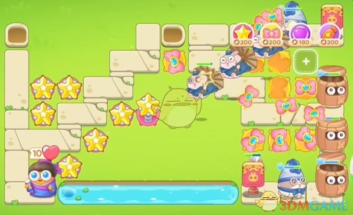 2、可以多建造魔法球,提升开图清理道具的速度,左侧继续放置蝴蝶结;