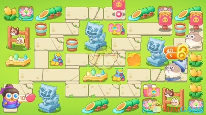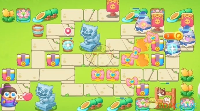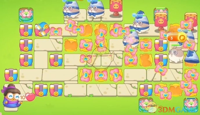 2、出现空位的时候继续放置蝴蝶结和磁铁,左侧可以使用磁铁清理道具;