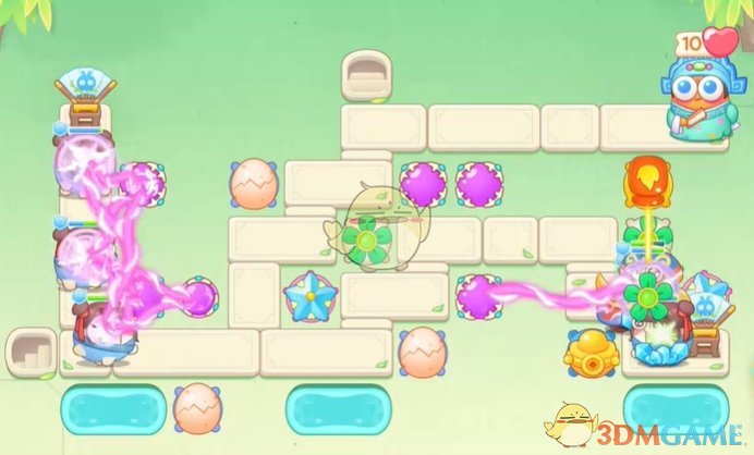1、开局在下面放置蛋壳,攻击出现的怪物,同时清理附近的道具;