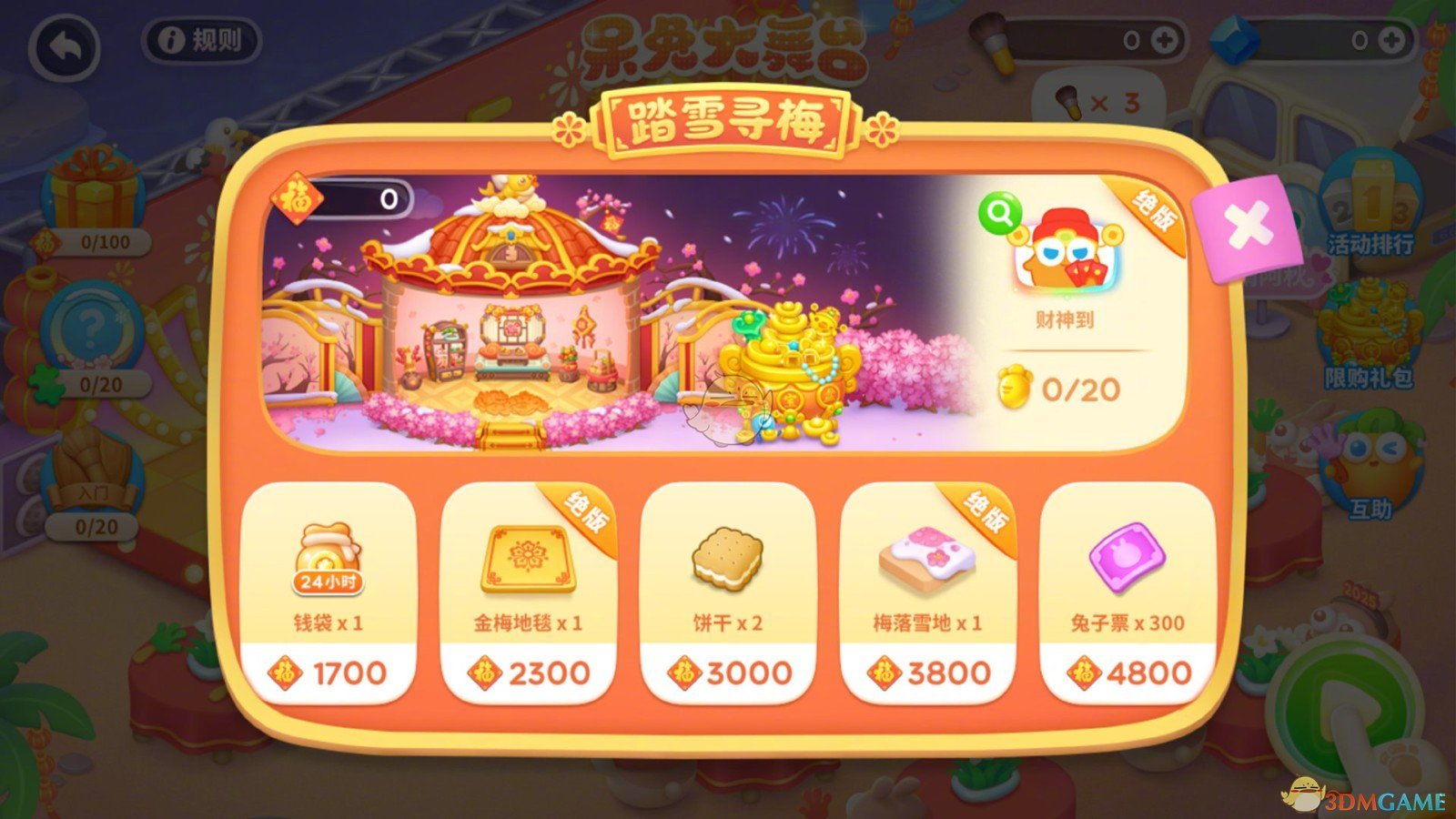 1、在呆兔大舞台活动中,玩家们可以挑战20个固定关卡和1个随机关卡;