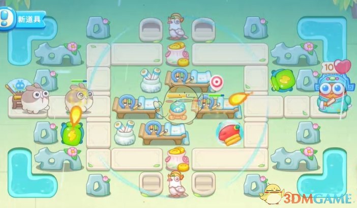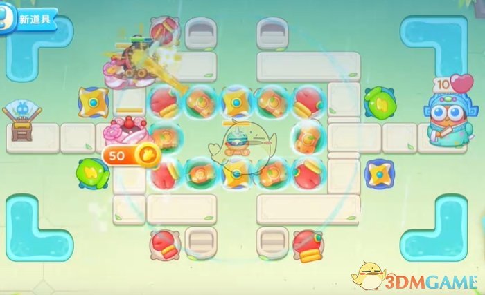 4、在攻击的同时需要将场上的炮塔升级,然后将道具清理掉;