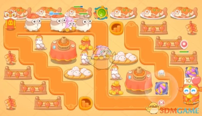 4、最后在上面和中间位置放满乌龟和火箭炮塔,即可快速通过关卡挑战;