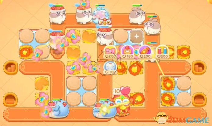1、开局在右侧放置喷火器,左侧放置满级蝴蝶结用来清理怪物;
