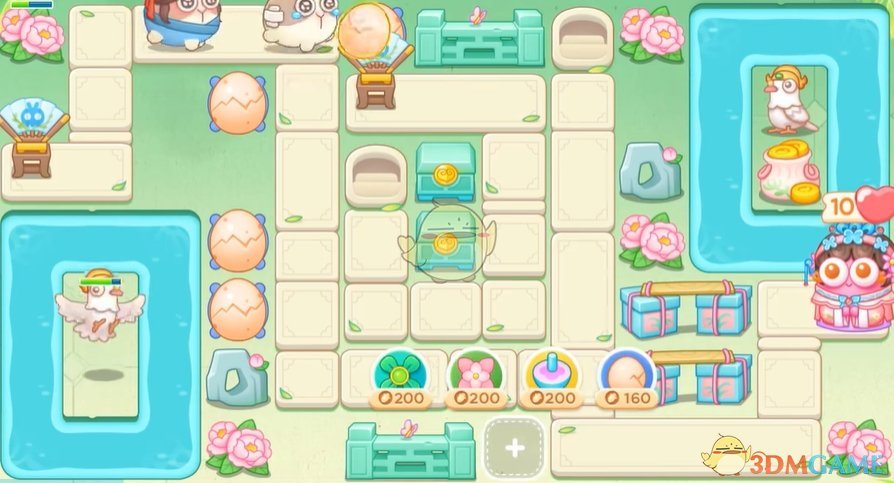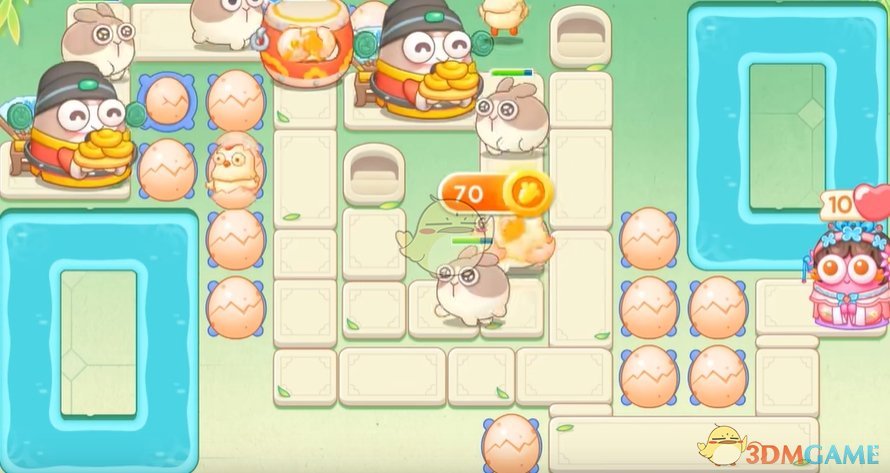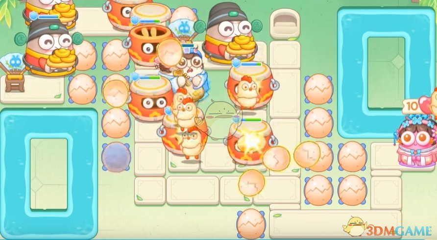 1、首先在左侧放置满级蛋壳,清理出现的怪物,右侧下方的蛋壳清理道具