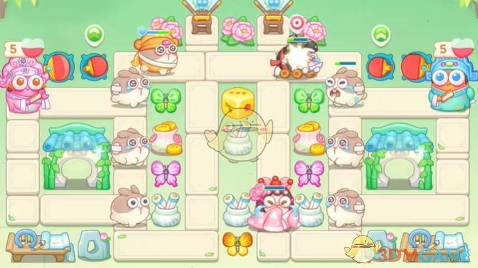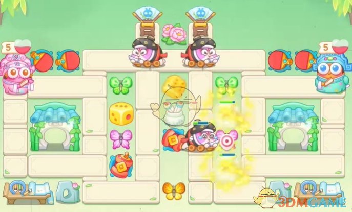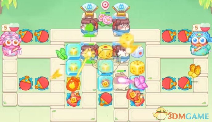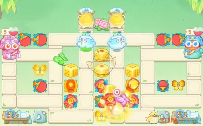 1、首先在上面放置球拍来清理道具,中间的骰子清理残血;
