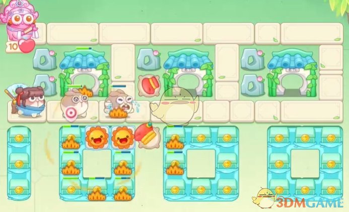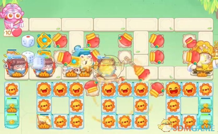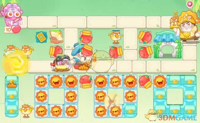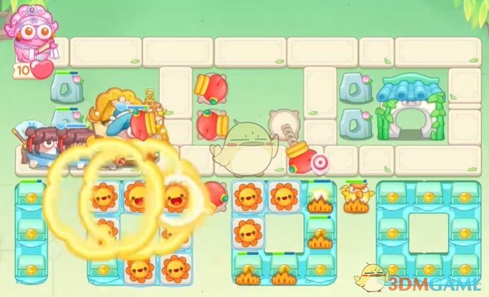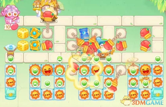 1、首先在上面放置拳套,清理怪物,下面的太阳花清理附近的道具;