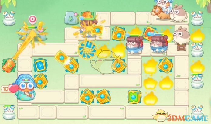 2、接着在萝卜附近继续放置卡牌,提升等级的同时清理附近的道具;