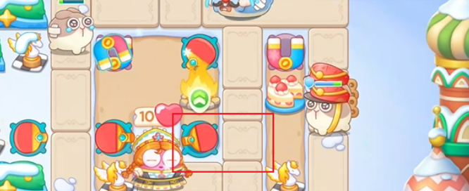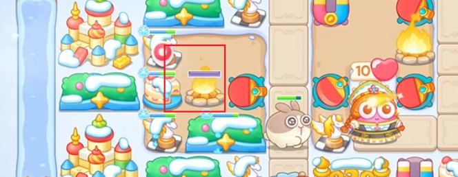2、进入关卡后直接就有三个吸铁石炮塔,然后往中间放一个火堆。