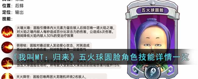以上就是小编整理带来的《我叫MT:归来》五火球圆脸角色技能详情一览,更多相关游戏攻略,请点击关注手游网!