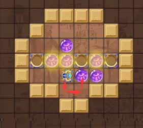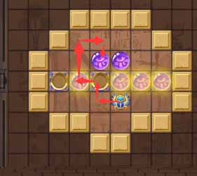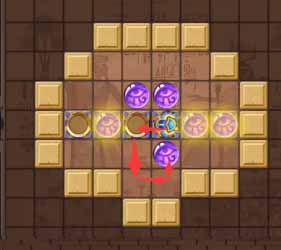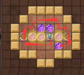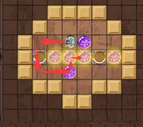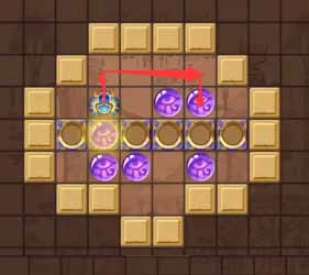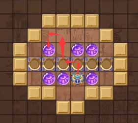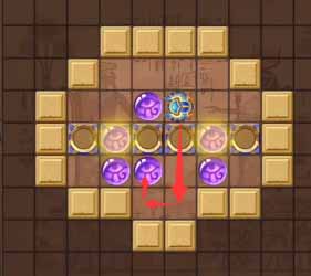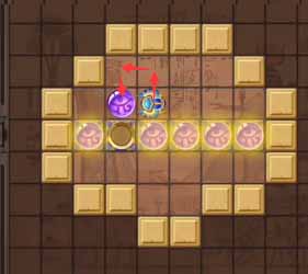 12、然后将左侧凹槽中的珠子顶到最左侧的凹槽,然后走到上方左侧的珠子将其顶到正下方的凹槽中。