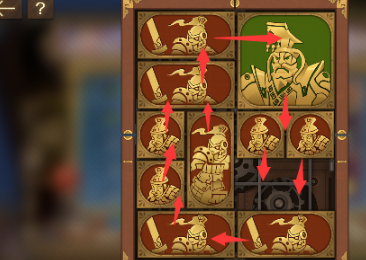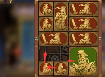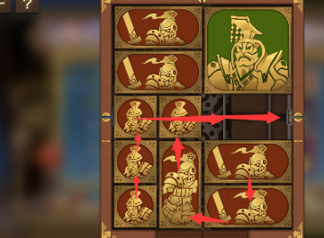 6、之后让将军下方的两个正方形向下移动,其上面的图形全部向下移动,左上角的图形向右移动,左边的所有图形全部向上。