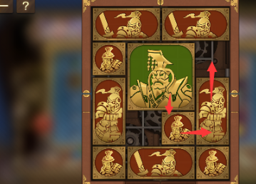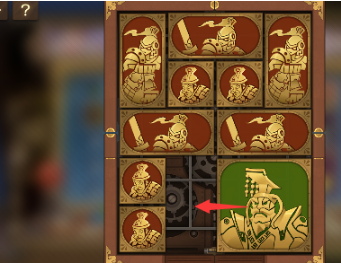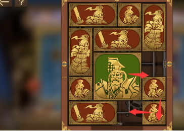 4、之后我们将右下角的正方形向左移动,其上方的另一个正方形向下移动,然后将军向右移动一格。