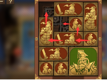 5、之后将左下方的正方形向右再向上移动,然后左下角的长方形向上移动,右下角的两个正方形向左移动,将军向下移动一格。