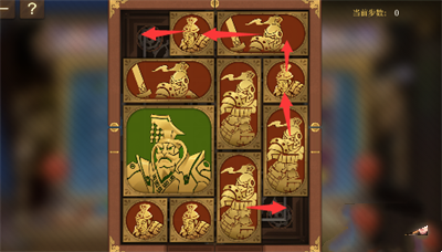 2、左下的小正方形向中间移动,将军下移一格,上方的长方形下移一格;