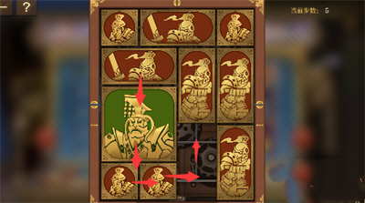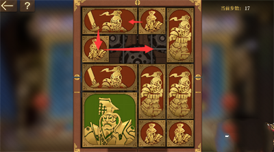 5、中间的方块全部向上移动,将军向右移动一格。
