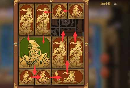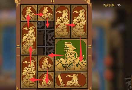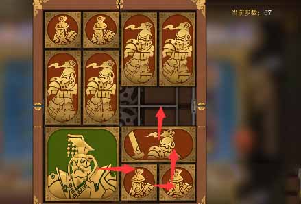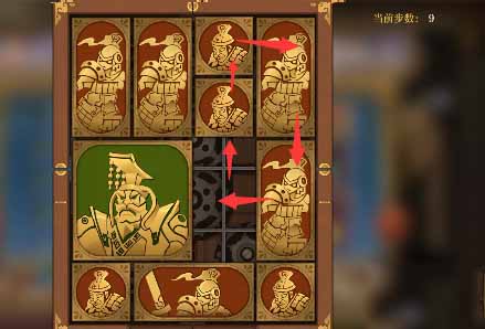 9、最后水平方块向上一格之后,下方的小方块靠右边即可让将军走出去。