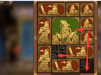 4、最后中间的长方形向右移动,其下方的长方形向上移动,左下角的正方形竖直排列,将军往左一格就可以完成本关。